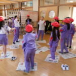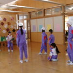 なわとびをしたり、グリコやだるまさんが転んだをしたりして体を動かす活動をしている班もあれば、黒板に絵を描いて絵しりとりをしている班など、楽しい活動を行っていました。