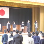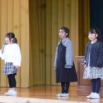 終業式では、各学年から代表の児童が、2学期にがんばったことを発表しました。漢字の練習や算数、理科の授業、テストに向けてなど、勉強でがんばったことや、学習のステージ発表会でがんばったことを、全校児童の前で堂々と発表しました。