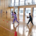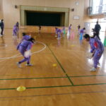 4年生は、初めてとは思えないくらい、上手にボールを打ったり、受けたりしています。授業の最終目標は、チーム対抗でのゲームです。練習中、「おしい」「ナイス」などの声も聞こえ、みんなで上手になれるようにがんばっています。