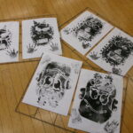 2年生は、図工の時間に紙版画に挑戦しています。画用紙を切ったり折ったりしながら形をつくり、その上に切り取った厚紙などのりで貼って、版をつくります。今回の紙版画のテーマは「~なオニ」です。悪いオニを退治しようと、一人一人がオニの顔をイメージして版をつくりました。ギザギザの顔、つり上がった目、モジャモジャの髪の毛など、迫力のある怖いオニになるよう表現を工夫しています。