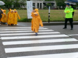 最後に、1,2年生が実際に横断歩道を渡り、今日の学びを確認しました。