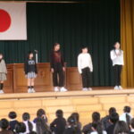 修了式の後、各学年の代表の児童が3学期にがんばったことを発表しました。漢字や計算の練習をがんばったことや、なわとびをがんばったことなどを全校児童の前で発表しました。それぞれが自分の経験から思ったことやこれからがんばりたいことなど、大きな声ではっきりと発表することができました。全校児童の前に立った子供たちだけでなく、どの子供も1年間、みんなで協力し合いながら、たくさんのことに挑戦しました。修了証を見ながら、おうちの人と一緒に、1年間がんばったことや成長したことを振り返って話してほしいと思います。