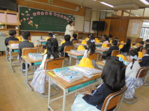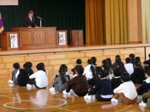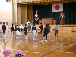 そして、2年生から6年生の子供たちも、1年生を拍手で迎え、大きな声で校歌を披露するなど、1年生の入学を温かくお祝いすることができました。
